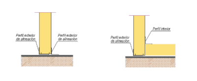 El acabado del panel vertical es totalmente plano en su parte inferior por lo que se produce puente térmico al estar las dos chapas del panel tocando la misma superficie del piso. Esta unión solo es aconsejable en recintos de temperaturas positiva o para la realización de divisiones de recintos con la misma temperatura.