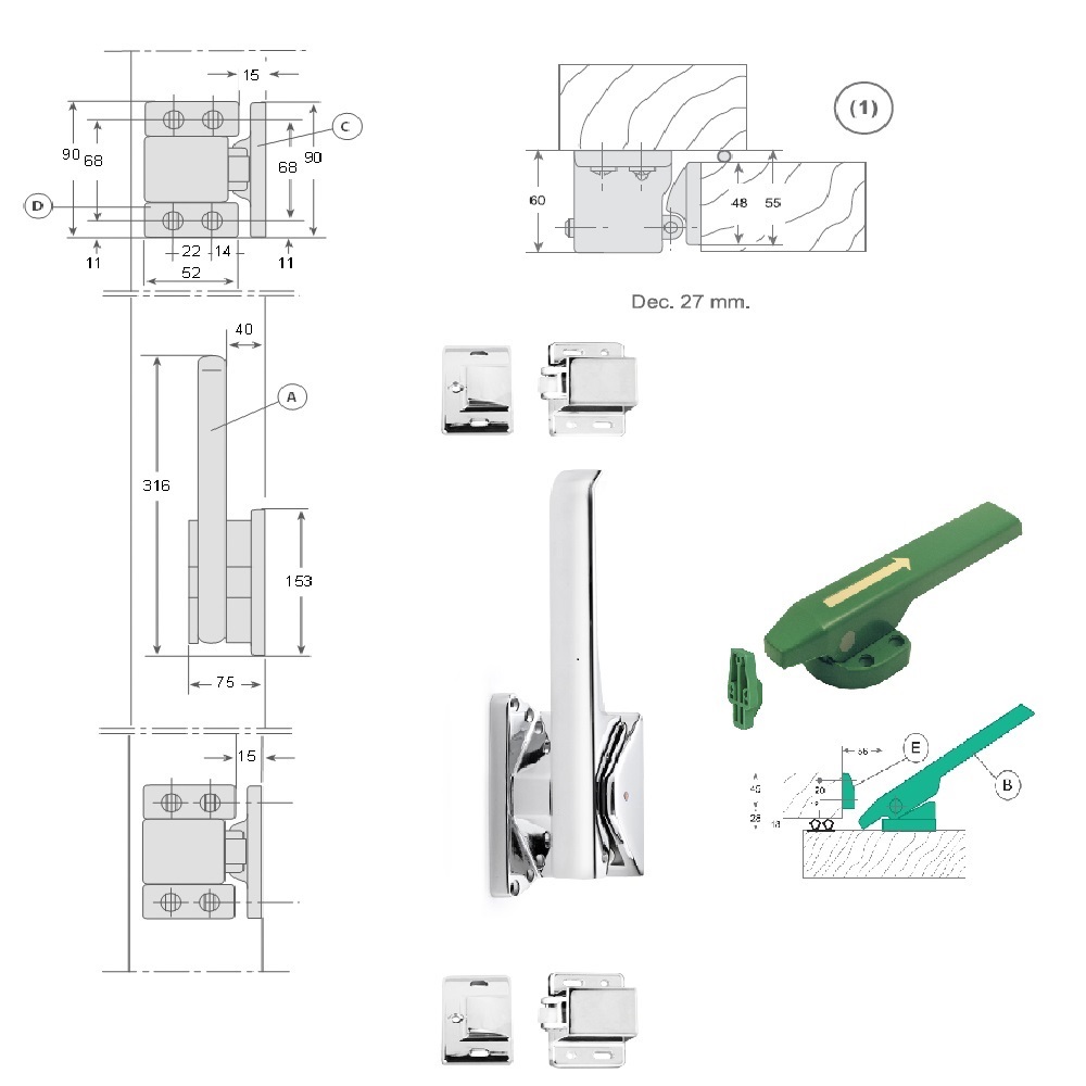 Esta maneta exterior G-76 puerta frigorífica de alta calidad está diseñada específicamente para puertas frigoríficas pivotantes, ofreciendo una solución resistente y duradera para cámaras frigoríficas. Fabricada en acero inoxidable, garantiza una excelente resistencia a la corrosión y un funcionamiento fiable en entornos de bajas temperaturas. Su diseño ergonómico permite un manejo sencillo y seguro, asegurando un cierre hermético para mantener la eficiencia de la cámara frigorífica. Ideal para aplicaciones en la industria alimentaria, farmacéutica y de almacenamiento en frío.