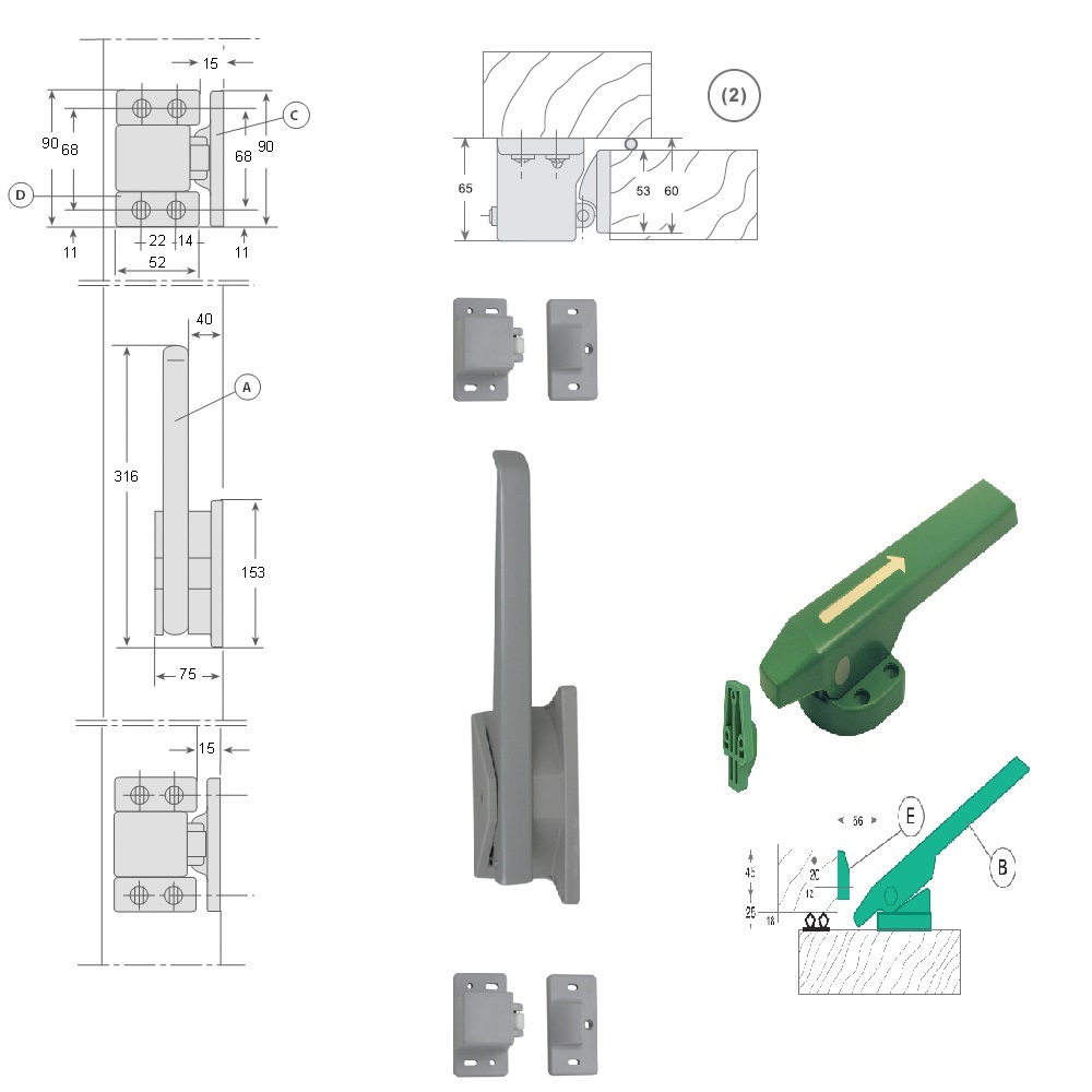 - Compatible con puertas frigoríficas pivotantes.